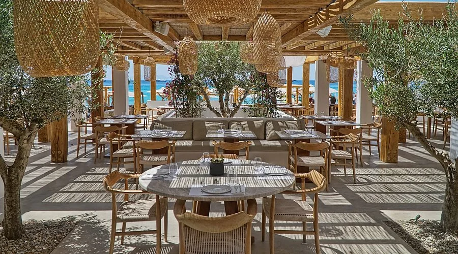 Seafront restaurant, beach club and shisha bar on Ornos Beach, blending Greek, Italian and Asian flavours with cocktails, music and barefoot evenings by the water.