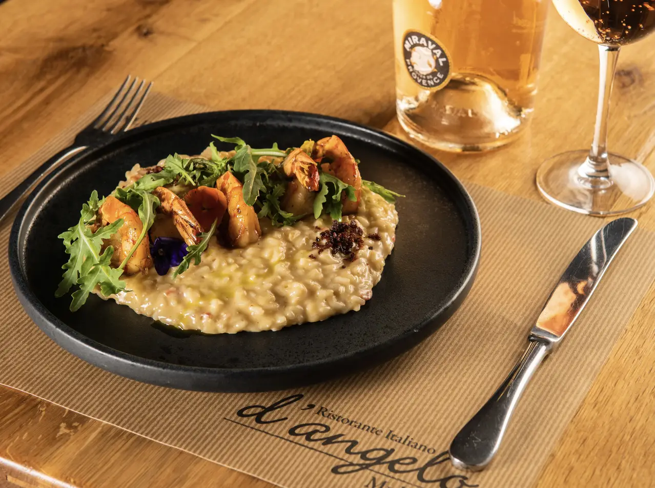 D’Angelo sits right where Mykonos nights begin: close enough for an easy walk, central enough to feel the buzz. The space reads clean, warm and social — the kind of room that makes you order “one more plate” because everyone else is.