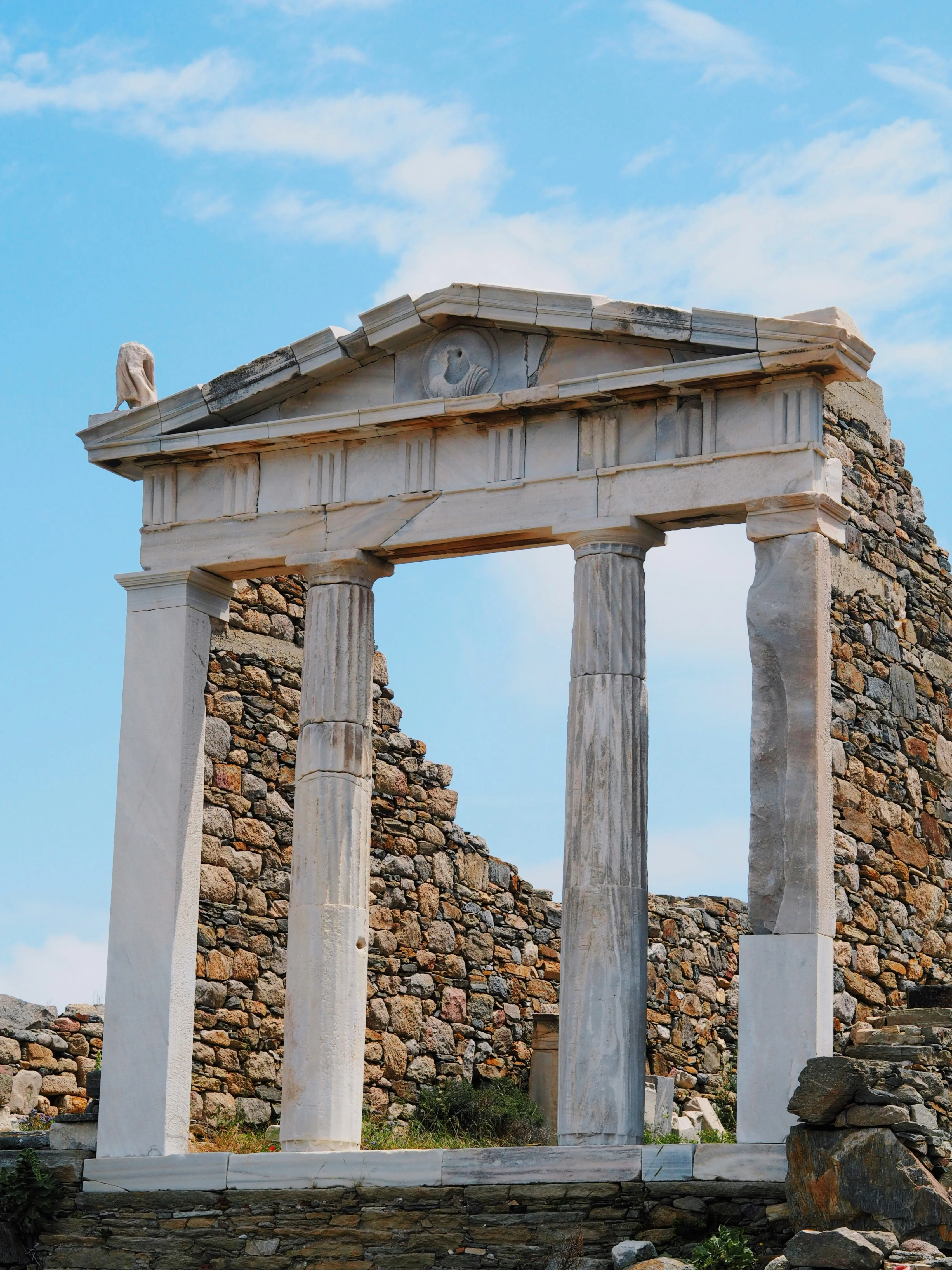 Delos is a preserved archaeological gem. Temples, markets, the Theatre of Delos, colonnades, houses with mosaic floors, and the famous Terrace of the Lions create the feeling of stepping into an entire ancient city left untouched.